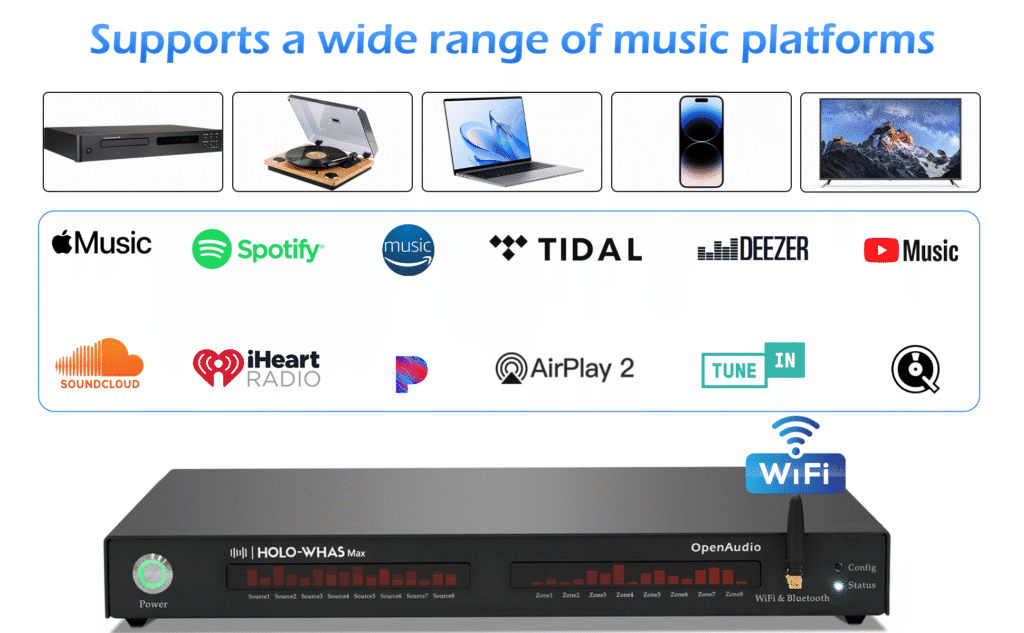 OpenAudio is dedicated to delivering cutting-edge smart home solutions with a range of products that includes HOLOWHAS, HoloHome Streamer+, HoloHome Streamer, and StreamerAmp Pro. Additionally, the HOLO-WHAS line has expanded to encompass HOLO-WHAS, HOLO-WHAS Ultra, HOLO-WHAS Plus, HOLO-WHAS Max, HOLO-WHAS Ultra-GC and HOLO-WHAS Plus-GC, etc. Each product is tailored to meet different needs within the smart home ecosystem, ensuring there’s an OpenAudio solution perfect for every home.